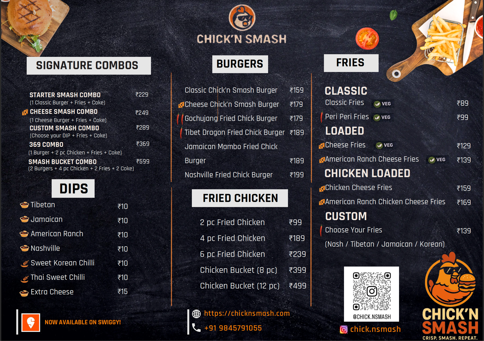 Follow us on Instagram @chick.nsmash to never miss out on fresh updates, new menu drops, special discounts, and mouth-watering food content straight from our kitchen.